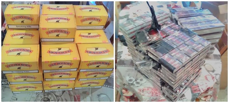 Από την έρευνα που έγινε, εντοπίστηκε στην εν λόγω οικία, ποσότητα 109 συσκευασιών των 200 τεμαχίων τσιγάρα με διάφορες μάρκες, (COOPER, PRESTIGE, PALACE, M & M και DUBAO) καθώς επίσης και 7,750 γραμμάρια καπνού για στριφτό τσιγάρο μάρκας OLD HOLBORN.