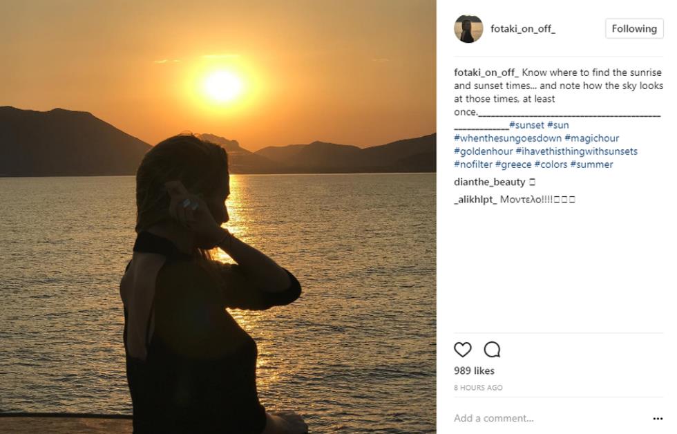Η Φωτεινή Πετρογιάννη πόσταρε μία φωτογραφία της που απολαμβάνει το ηλιοβασίλεμα και έγραψε: