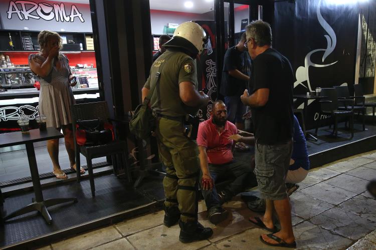 Τραυματίες είναι δύο πολίτες και τα τρία μέλη του τηλεοπτικού συνεργείου του ΑΝΤ1, ένας δημοσιογράφος και 2 τεχνικοί. Ο ένας πολίτης δέχθηκε πέτρα στο κεφάλι ενώ ο άλλος ξυλοκοπήθηκε από νεαρούς έξω από κατάστημα καφέ στο οποίο προξένησαν φθορές. Ο δημοσιογράφος και οι τεχνικοί ξυλοκοπήθηκαν επίσης από ομάδα περίπου 15 ατόμων και μεταφέρθηκαν για τις πρώτες βοήθειες σε νοσοκομεία.