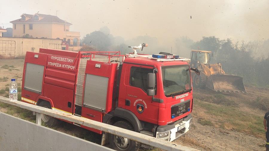 Οχημα της Πυροσβεστικής Υπηρεσίας Πάφου μετέβη στη σκηνή ενώ ο ιδιοκτήτης της θεριστικής μηχανής ανέφερε ότι την ώρα που άρχισε η φωτιά βρισκόταν σε λειτουργία.