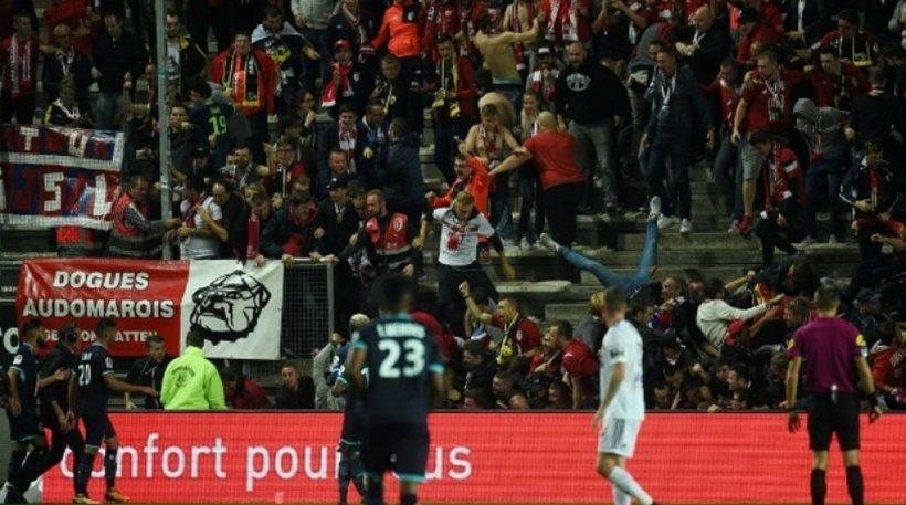 Οπαδοί της Λιλ πανηγύριζαν το γκολ της ομάδας τους στην Αμιέν όταν υποχώρησε το κιγκλίδωμα και έπεσαν στο κενό από ύψος δύο μέτρων - Δείτε εικόνες από τη στιγμή του ατυχήματος και την παρέμβαση των ανθρώπων του γηπέδου