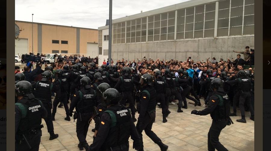 Εξάλλου ένα βίντεο που αναρτήθηκε στον ιστότοπο της εφημερίδας δείχνει μέλη των δυνάμεων αντιμετώπισης ταραχών της ισπανικής αστυνομίας να αντιπαρατίθενται με εξαγριωμένους ψηφοφόρους.