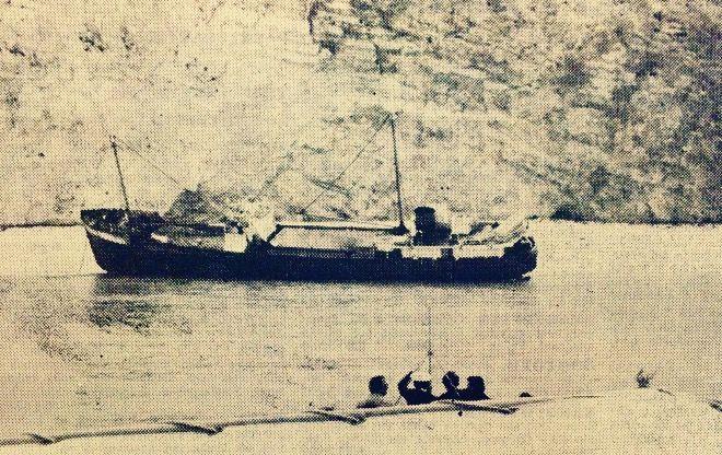 Καπετάνιος και πλήρωμα συνέλαβαν με χρήση όπλου τους Ιταλούς συνοδούς του φορτίου, τους έκλεισαν σε μια καμπίνα και αφού συνεννοήθηκαν με διαφορετικούς μεσολαβητές, αποφάσισαν να πουλήσουν για λογαριασμό τους το παράνομο εμπόρευμα. Σύμφωνα με όσα ανέφεραν οι δύο Ιταλοί όμηροι στην καμπίνα που ήταν κλειδωμένοι για 13 ημέρες τραβούσαν γραμμές στην λαμαρίνα για να μην "χάσουν" τον λογαρισμό. Ο καπετάνιος οδήγησε το πλοίο στον όρμο του “Σπυριλή”, και περίμεναν. Λόγω όμως των κακών καιρικών συνθηκών που επικρατούσαν, προσάραξαν στα αβαθή του όρμου. Άρχισαν τότε να ξεφορτώνουν στη μικρή αμμουδιά τις κούτες με τα τσιγάρα, μήπως και κατορθώσουν και αποκολλήσουν το σκάφος. Όμως τα πράγματα δυσκόλεψαν, δεν μπόρεσαν να τα καταφέρουν, ενώ παράλληλα αρκετές κούτες με τσιγάρα παρασύρθηκαν από τα κύματα, με αποτέλεσμα να εκβραστούν στη γύρω περιοχή.