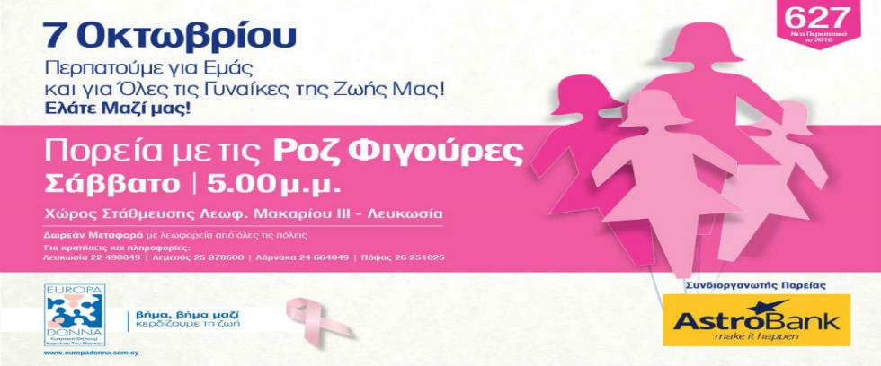 Εuropa Donna Κύπρου και AstroBank, καλούν όλους τους πολίτες να συμμετάσχουν στην Πορεία με τις Ροζ Φιγούρες και να περπατήσουν, μαζί, για ΟΛΕΣ τις γυναίκες τις ζωής τους.