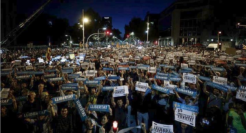 «Ανεξαρτησία» (Independenzia) φώναζε το πλήθος απαιτώντας την απελευθέρωση του Ζόρντι Κουσάρτ και του Ζόρντι Σάντσες, επικεφαλής δύο εκ των σημαντικότερων αυτονομιστικών οργανώσεων της Καταλονίας, της Omnium Cultural και της Καταλανικής Εθνικής Συνέλευσης (ANC).