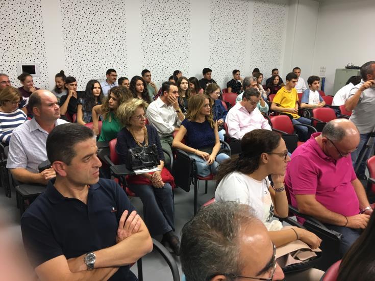 Στην τελετή, η οποία πραγματοποιήθηκε στο Εκπαιδευτικό Πολιτιστικό Κέντρο του ΕΤΕΚ στην παλιά Λευκωσία απηύθυναν χαιρετισμούς ο Στέλιος Αχνιώτης, Πρόεδρος του ΕΤΕΚ, ο Αντώνης Λαζάρου, Πρόεδρος του Συνδέσμου Καθηγητών Σχεδιασμού και Τεχνολογίας, εκπρόσωπος του Υπουργείου Παιδείας και Πολιτισμού και η Ιωάννα Παναγιώτου, Επίτροπος Περιβάλλοντος.