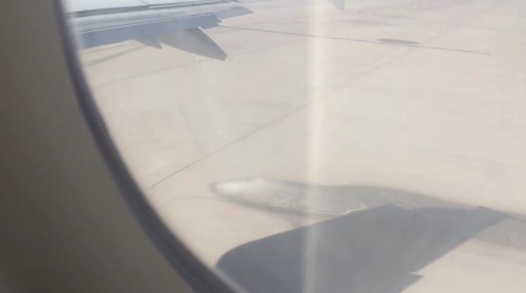 Μεγάλες ποσότητες υγρού καυσίμου χύνονται από το φτερό ενός αεροσκάφους Airbus A321, όπως φαίνεται σε βίντεο που ανάρτησε επιβάτης στο διαδίκτυο.