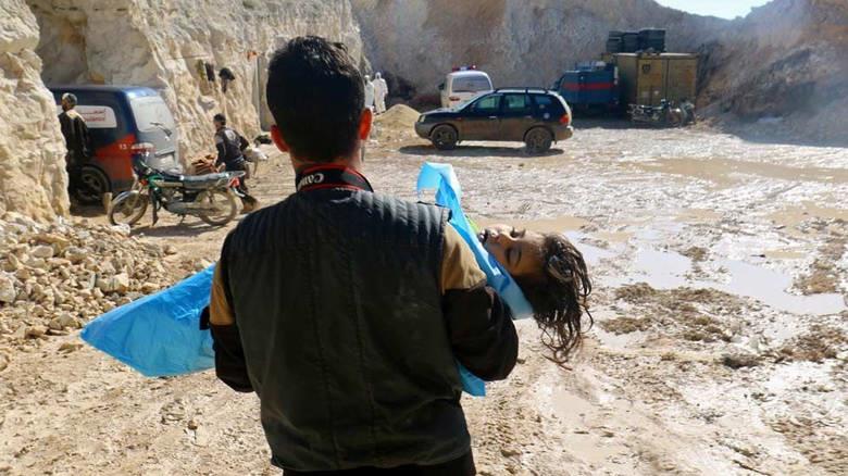 Πρόφατη έκθεση των Ηνωμένων Εθνών ανέφερε πως κυβερνητικό αεροσκάφος έριξε σαρίν στην πόλη Χαν Σεϊχούν που βρίσκεται στην επαρχία Ιντλίμπ, σκοτώνοντας 80 αμάχους, ανάμεσά τους πολλές γυναίκες και παιδιά.