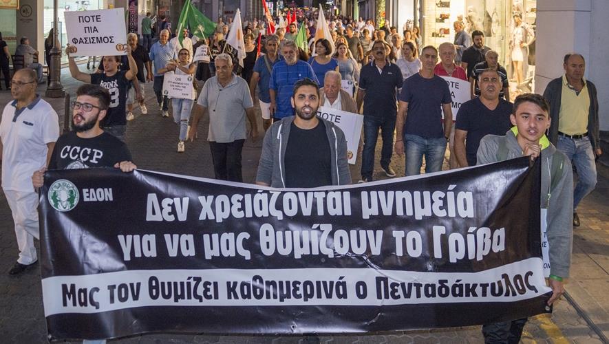 «Τα αποτελέσματα της προδοτικής δράσης του Γρίβα είναι σε όλους γνωστά και δεν χρειάζονται μνημεία για να τα αναδεικνύουν. Ακόμη αντικρίζουμε τη σημαία της κατοχής στον σκλαβωμένο Πενταδάκτυλο» σημειώνεται.