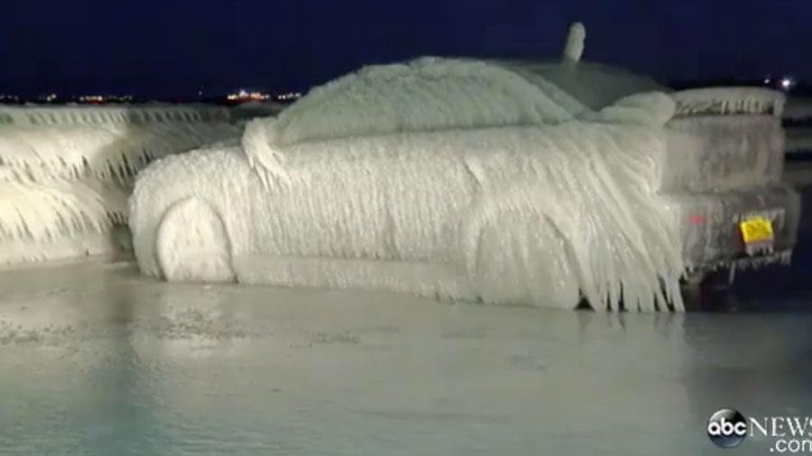 Ένας Νεοϋορκέζος είχε την ατυχή έμπνευση να παρκάρει κοντά στη λίμνη Erie την ώρα που παρακολουθούσε έναν αγώνα σε κοντινό εστιατόριο. Οι ισχυροί άνεμοι σε συνδυασμό με τις πολικές θερμοκρασίες συνέβαλαν ώστε το αυτοκίνητό του να καλυφθεί αρχικά με νερό από τη λίμνη και ακολούθως το μετέτρεψαν σ’ ένα γλυπτό από πάγο.