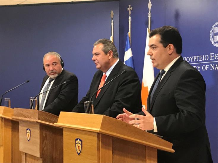 «Η διαχρονική συνεργασία και επικοινωνία των λαών της Κύπρου, της Ελλάδας και του Ισραήλ, υπήρξε ιδιαιτέρως σημαντική για την πρόοδο, την ευημερία και την ασφάλεια της ευρύτερης περιοχής της Ανατολικής Μεσογείου», δήλωσε από την πλευρά του, ο υπουργός Άμυνας της Ελλάδας, Πάνος Καμμένος. Επιπλέον, πρόσθεσε ότι όποτε αυτή η επικοινωνία εμποδιζόταν από εξωγενείς παράγοντες, όλη η περιοχής της Ανατολικής Μεσογείου χαρακτηριζόταν από επιβράδυνση και στασιμότητα που ορισμένες φορές κατέληγαν σε συγκρούσεις.