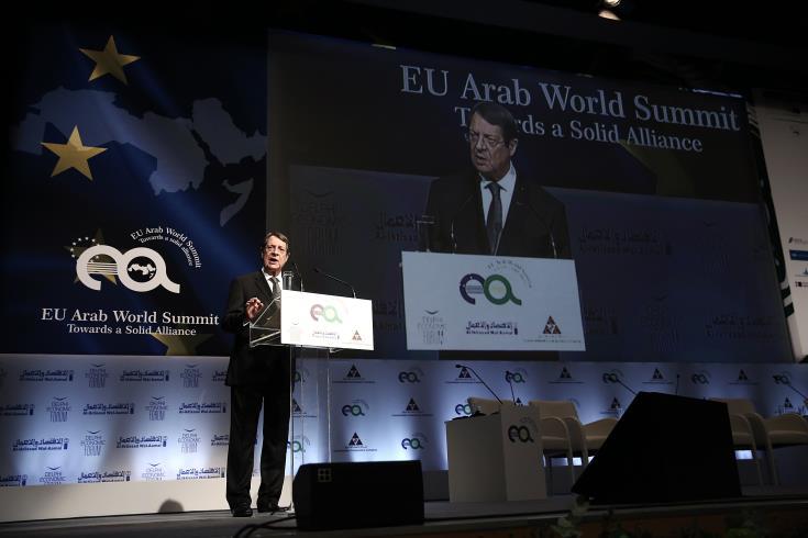Έμφαση στη διαμόρφωση ενός πλαισίου σταθερότητας, ασφάλειας και συνεργασίας μεταξύ της ΕΕ και των χωρών του αραβικού κόσμου, έδωσε ο Πρόεδρος της Κυπριακής Δημοκρατίας Νίκος Αναστασιάδης, κατά τη διάρκεια της ομιλίας του στη 2η Ευρω-Αραβική Διάσκεψη, που διεξάγεται στην Αθήνα.
