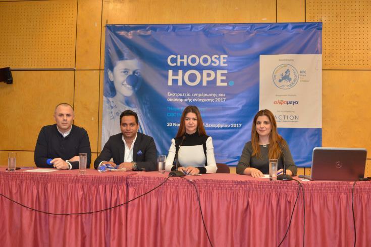 Έκκληση για συμμετοχή στην εκστρατεία «Choose Hope» που αποσκοπεί στην ενημέρωση του κοινού και την οικονομική ενίσχυση του «Hope For Children» απευθύνει ο ίδιος ο Μη Κυβερνητικός Οργανισμός, ανήμερα, της Διεθνούς Ημέρας του Παιδιού.