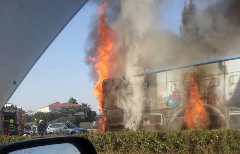 Η φωτιά ξεκίνησε, σύμφωνα με την Αστυνομία από το πίσω μέρος του λεωφορείου, ενώ τα 2 πρόσωπα όπως και ο οδηγός που βρίσκονταν εντός εξήλθαν από αυτό με ασφάλεια. Στη σκηνή κλήθηκαν και μετέβησαν άμεσα η Πυροσβεστική και η Αστυνομία. Η φωτιά κατασβήστηκε από τα μέλη της Πυροσβεστικής μέχρι τις 8:30.
