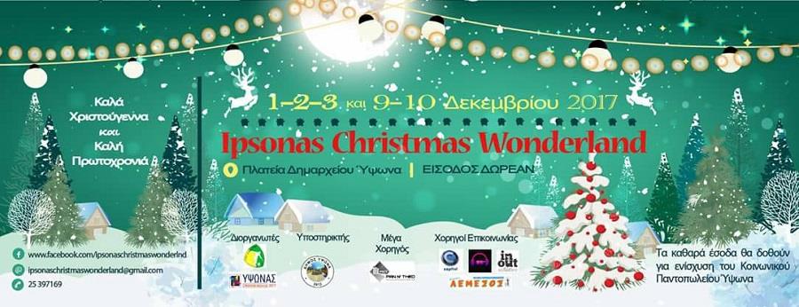 Το σωματείο ΕΝΥ-ΔΙΓΕΝΗΣ ΥΨΩΝΑ σε συνεργασία με το Δημοτικό Συμβούλιο Νεολαίας Δήμου Ύψωνα και το Δήμο Ύψωνα στις 1-2-3/12/2017 και 9-10/12/2017 θα συνδιοργανώσουν την εκδήλωση "Ipsonas Christmas Wonderland" στον εξωτερικό χώρο του Δημαρχείου Ύψωνα.
