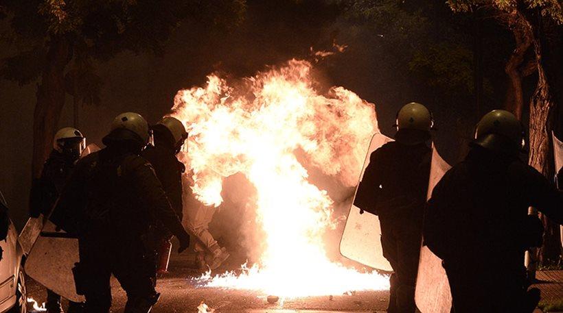 Λίγο μετά τις 9 το βράδυ τα επεισόδια είχαν ως επίκεντρο την περιοχή γύρω από την οδό Μπουμπουλίνας, ενώ η Αστυνομία είχε ήδη προχωρήσει σε 21 προσαγωγές.