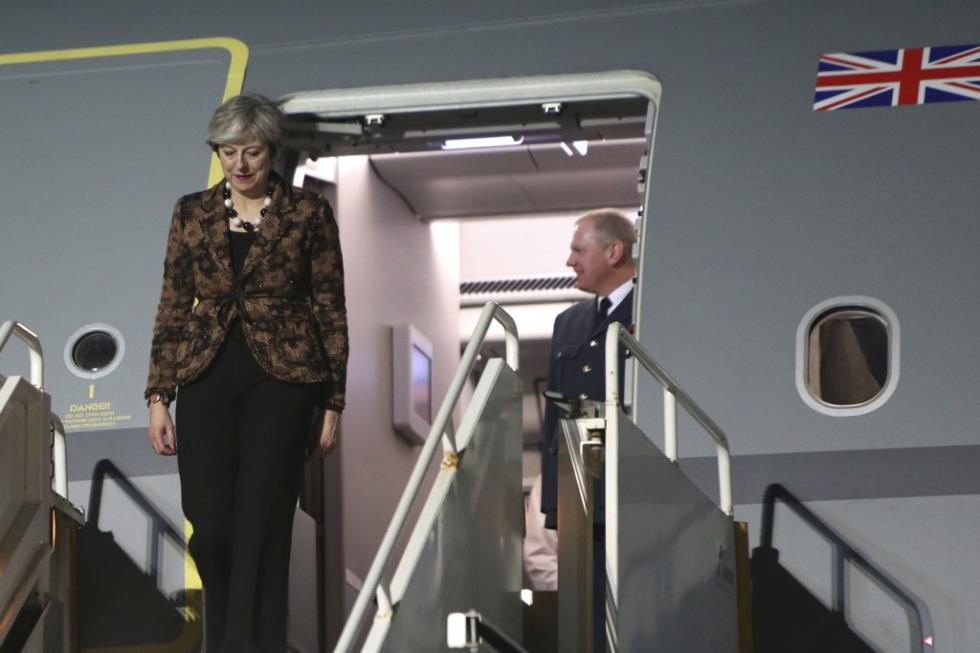 Η Τερέζα Μέι έφθασε χθες βράδυ στην Κύπρο και στη Βρετανική Βάση στο Ακρωτήρι, με Airbus της Βασιλικής Πολεμικής Αεροπορίας, συνοδευόμενη από δημοσιογράφους βρετανικών Μέσων Ενημέρωσης, ενώ μίλησε σε 200 περίπου στρατιώτες, γύρω στις 9 σήμερα το πρωί.