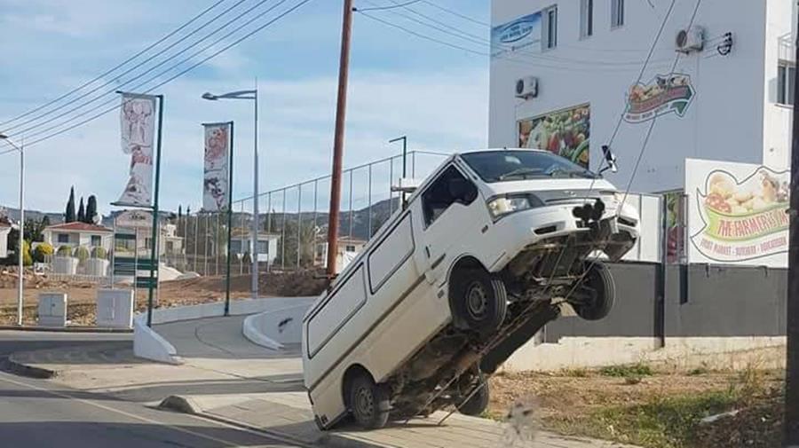 Δεν πίστευαν στα μάτια τους οι οδηγοί που περνούσαν από το σημείο όπου οδηγός βαν οχήματος «κατάφερε» να το ανεβάσει στα καλώδια της ΑΗΚ.