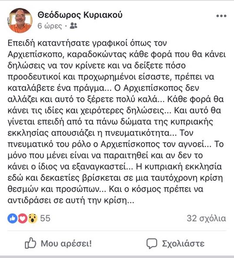 Διαβάστε αυτούσια την ανάρτηση του θεολόγου Θεόδωρου Κυριακού