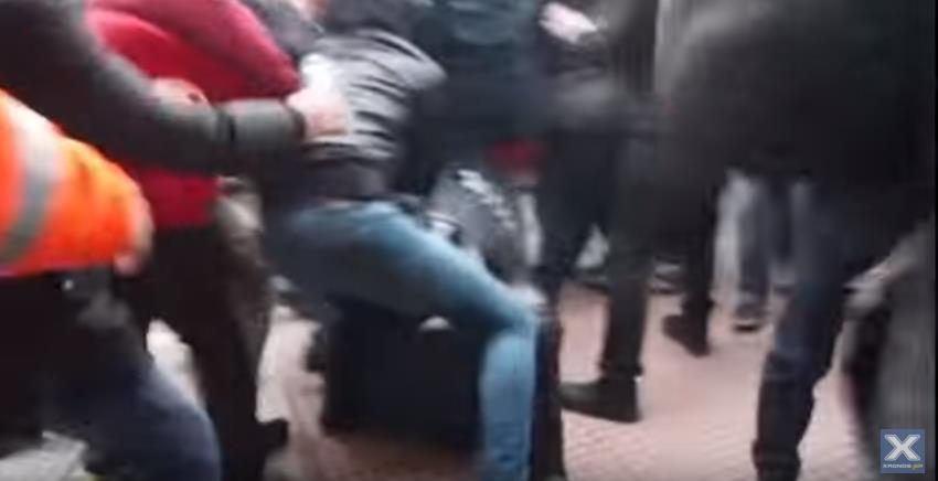 Γερό ξύλο έφαγε ένας αστυνομικός των ΜΑΤ στην Ελλάδα από αγρότες στην Κομοτηνή.