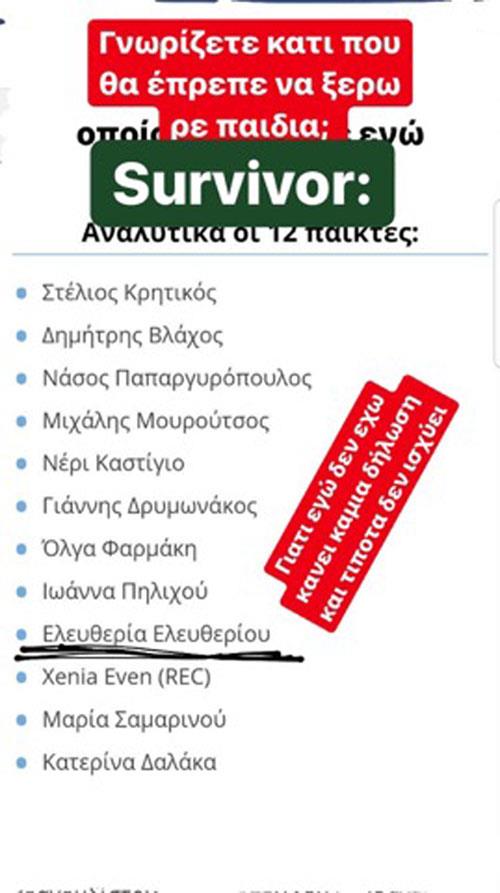 Η γνωστή παρουσιάστρια επικαλέστηκε σήμερα δημοσίευμα κυπριακής ιστοσελίδας και ανέφερε πως η τραγουδίστρια, τελικά, δεν θα μπει στο Survivor.