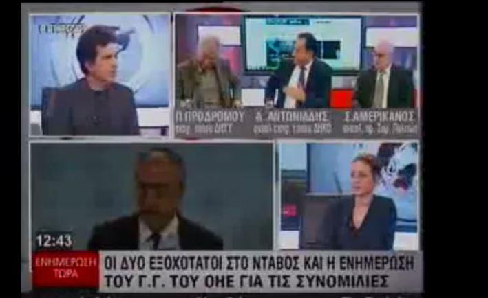 Ακολούθησε ένας μικρός πανζουρλισμός με τον ένα να διακόπτει τον άλλο και τον Άθω Αντωνιάδη να προειδοποιεί πως αν συνεχίσει ο κ. Προδρόμου να συμπεριφέρεται χωρίς σεβασμό θα έφευγε από την εκπομπή.
