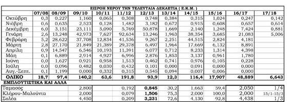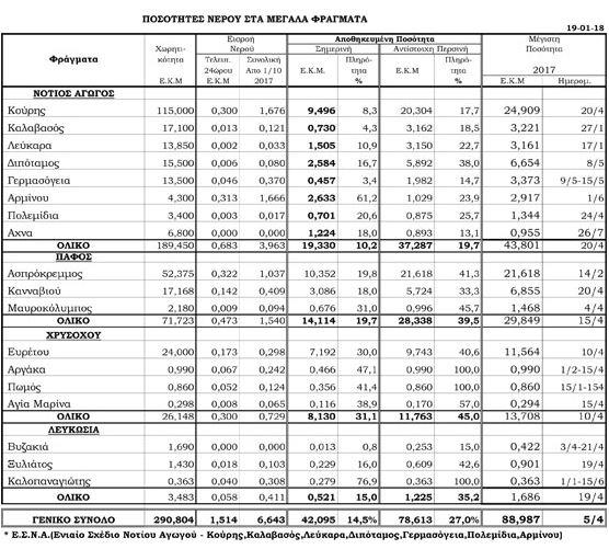 Συγκεκριμένα, όπως φαίνεται και στον πιο κάτω πίνακα, μέσα σε μια μέρα το γενικό σύνολο της εισροής νερού ήταν 1,5 Ε.Κ.Μ.