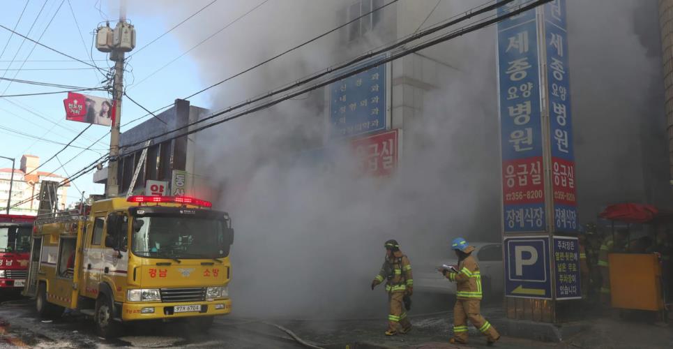 Μια γιγαντιαία πυρκαγιά εκδηλώθηκε την Παρασκευή σε νοσοκομείο της Νότιας Κορέας, με αποτέλεσμα να χάσουν τη ζωή τους τουλάχιστον 41 άνθρωποι, σύμφωνα με το πρακτορείο ειδήσεων Γιονάπ· πρόκειται για τη χειρότερη τέτοια καταστροφή που έχει πλήξει τη χώρα την τελευταία δεκαετία και πλέον.
