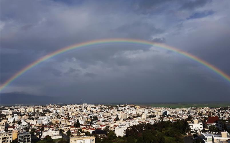 Ένα υπέροχο ουράνιο τόξο έκανε την εμφάνισή του στον ουρανό, σκεπάζοντας με τα χρώματα της ίριδας τη Λευκωσία.
