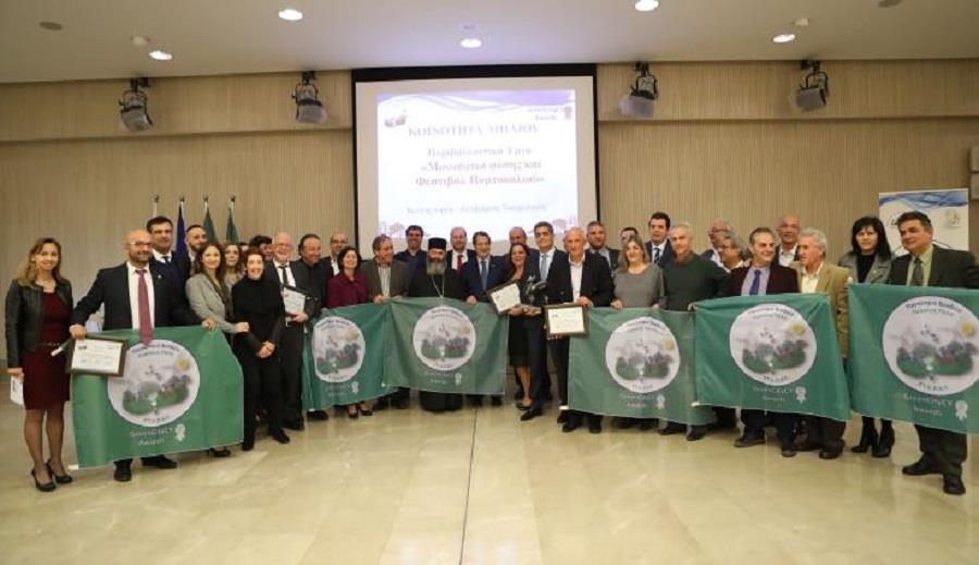 Βραβεύτηκαν ο Δήμος Αραδίππου που συγκέντρωσε και την υψηλότερη βαθμολογία για την Μονάδα διαχείρισης κτηνοτροφικών αποβλήτων και για το πρόγραμμα ‘Έξυπνη πόλη: Βελτιώνω την πόλη μου με έξυπνες ιδέες’, ο Δήμος Αγλαντζιάς για το Πρόγραμμα ‘Πληρώνω ό,τι πετώ – Pay as you throw (PAYT) και την εκστρατεία ‘Που τα πετάς ρε!’, o Δήμος Λάρνακας για το πρόγραμμα ‘Γνωρίστε τις αλυκές’, ο Δήμος Αγίου Αθανασίου για την παροχή κινήτρων για προώθηση της οικιακής κομποστοποίησης, ο Δήμος Στροβόλου για την δημιουργία περιβαλλοντικής κουλτούρας, ο Δήμος Λατσιών για την στρατηγική υποδομών και ως πράσινος Δήμος, ο Δήμος Αθηένου για το 1ο Παγκύπριο φεστιβάλ παραδοσιακών προϊόντων με ξενάγηση, βιωματικά εργαστήρια και εκθέσεις, η Κοινότητα Λουβαρά για την υπαίθρια έκθεση ψηφιδωτών και η Κοινότητα Μηλιού για τα μονοπάτια της φύσης και το φεστιβάλ πορτοκαλιού.