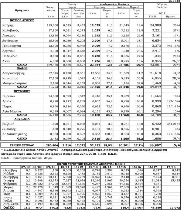 Στην αντίπερα όχθη το φράγμα του Κούρρη που είναι το μεγαλύτερο στην Κύπρο με χωρητικότητα 115 εκατομμύρια κυβικά μέτρα βρίσκεται στο 11% της πληρότητάς του.