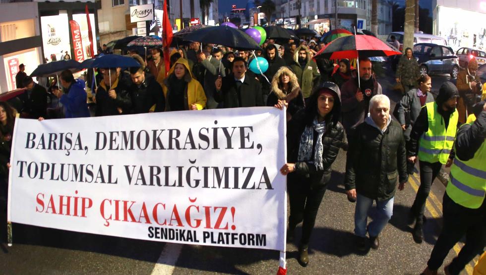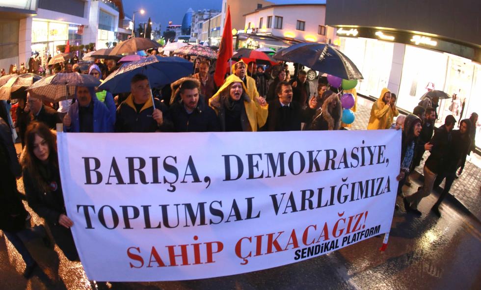 Υπό βροχή και γύρω στις 1830 ολοκληρώθηκε η πορεία «ειρήνης και δημοκρατίας» με τη συμμετοχή χιλιάδων Τουρκοκυπρίων, την οποία διοργάνωσε η τ/κ συνδικαλιστική πλατφόρμα.
