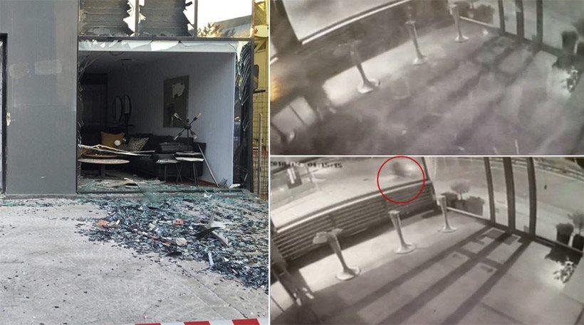Οι εικόνες που μετέδωσε ο ΣΚΑΪ εξετάζονται από την αστυνομία για τον εντοπισμό των δραστών. Στο βίντεο φαίνεται μια μοτοσικλέτα να φτάνει έξω από το κατάστημα - Ο ένας από τους δύο αναβάτες αφήνει κάτι στην είσοδό του και φεύγει - Ακολουθεί η ισχυρότατη έκρηξη.