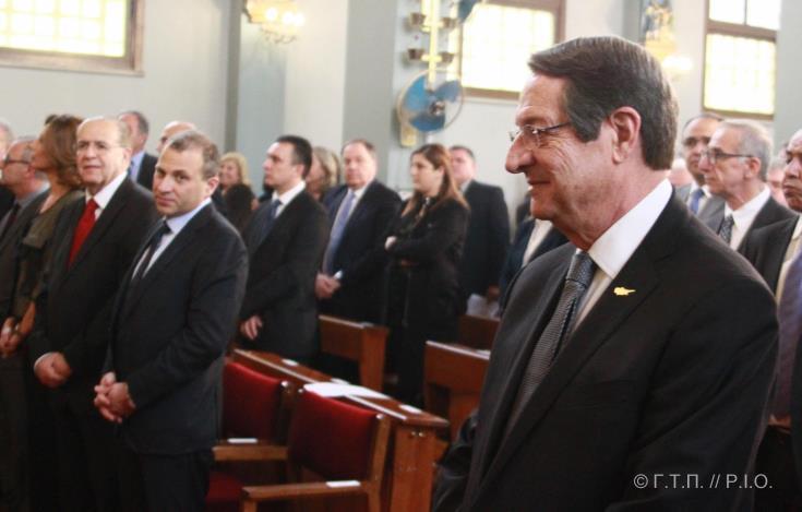 Στο πλαίσιο χαιρετισμού του στη λειτουργία για την γιορτή του Αγίου Μάρωνα, στην Παναγία Χαρίτων, στη Λευκωσία, ο Πρόεδρος Αναστασιάδης έκανε ιδιαίτερη αναφορά στην παρουσία στο χώρο του Υπουργού Εξωτερικών του Λιβάνου Τζιμπράν Μπασίλ.