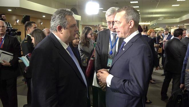Κατά τη διάρκεια διαδοχικών συναντήσεων, που είχε σήμερα το πρωί στις Βρυξέλλες, στο περιθώριο της υπουργικής συνόδου του ΝΑΤΟ, ο Έλληνας υπουργός επέστησε, όπως δήλωσε στο ΑΠΕ-ΜΠΕ, την προσοχή των Στόλτεμπεργκ και Μάτις στις πρόσφατες δηλώσεις της τουρκικής πλευράς με τις οποίες «αμφισβητούν την ελληνικότητα των νησιών». Ο κ. Καμμένος αναφέρθηκε, επίσης, «στους ναυτικούς χειρισμούς των Τούρκων που έφτασαν στο σημείο να εμβολίσουν πλοίο του Λιμενικού» τονίζοντας ότι προσεγγίζουν «το όριο της ανεκτικότητας».