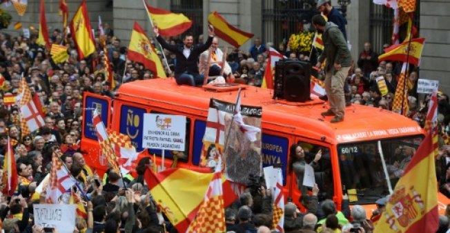Χιλιάδες άνθρωποι κατέκλυσαν τους δρόμους της Βαρκελώνης σήμερα υπέρ της ενότητας της Ισπανίας και κατά της αυτονομίας της Καταλονίας.