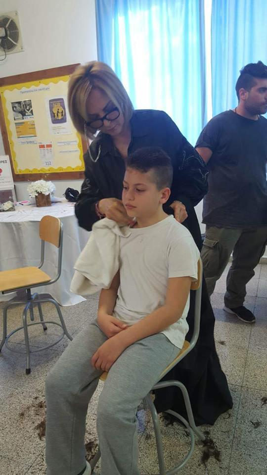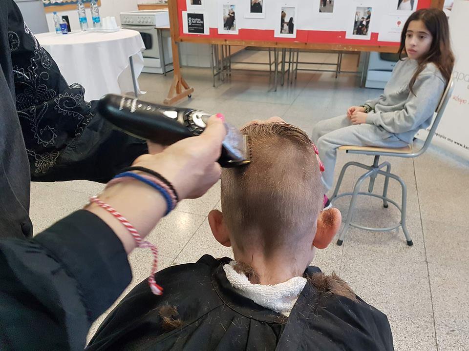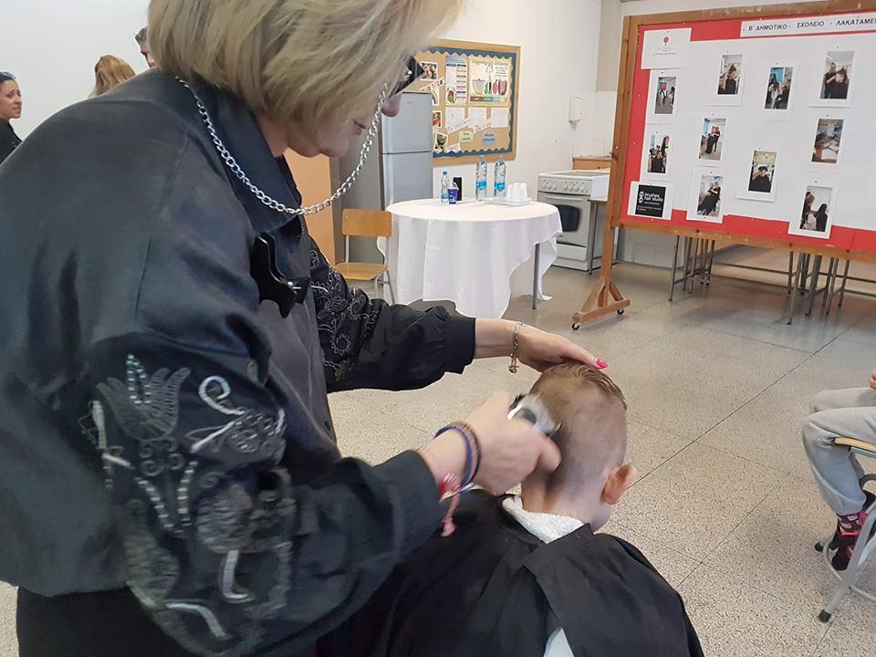Πενήντα παιδιά από τα διακόσια που φοιτούν στο σχολείο, κάθισαν στην καρέκλα και αφέθηκαν στα χέρια κομμωτών από το κομμωτήριο Blushes, οι οποίοι αφιλοκερδώς τους έκοψαν τα μαλλάκια τους.