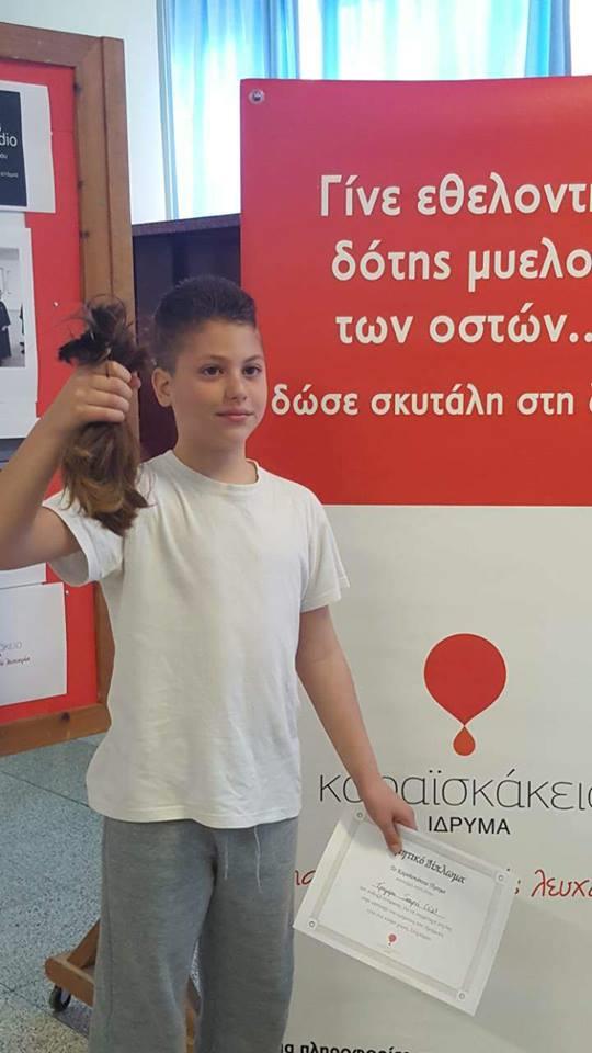 Κάποια παιδιά, όπως ο Γρηγόρης, είχαν μακρύ μαλλί και η απόφαση να το αποχωριστούν δεν ήταν εύκολη, ωστόσο, γνωρίζοντας ότι κάνουν μια όμορφη πράξη βοηθώντας άλλα συνομήλικα παιδιά, δε δίστασαν να τα κόψουν, ποζάροντας περήφανα με την κοτσίδα τους, η οποία θα χρησιμοποιηθεί για τη δημιουργία μιας περούκας για κάποιο παιδί που τη χρειάζεται.
