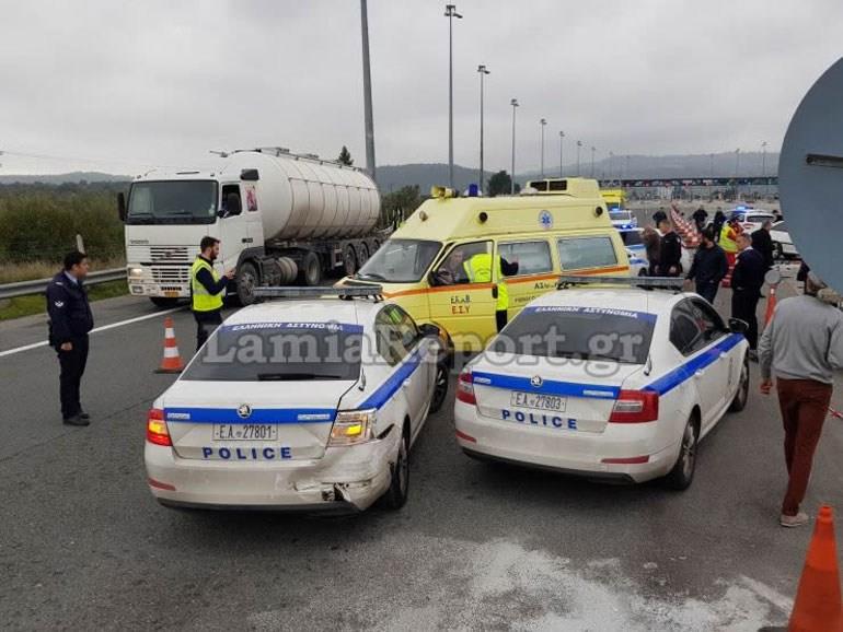 Στα διόδια της Τραγάνας τοποθετήθηκαν φορτηγά αυτοκίνητα, αλλά και περιπολικά, μπροστά στις μπάρες κλείνοντας τις διόδους, ενώ απομακρύνθηκαν οι αστυνομικοί, με συνέπεια τρία λεπτά μετά τις 09.00 το Ι.Χ. να πέσει πάνω στο μπλόκο προκαλώντας σοβαρές ζημιές σε δύο περιπολικά και ένα φορτηγό.