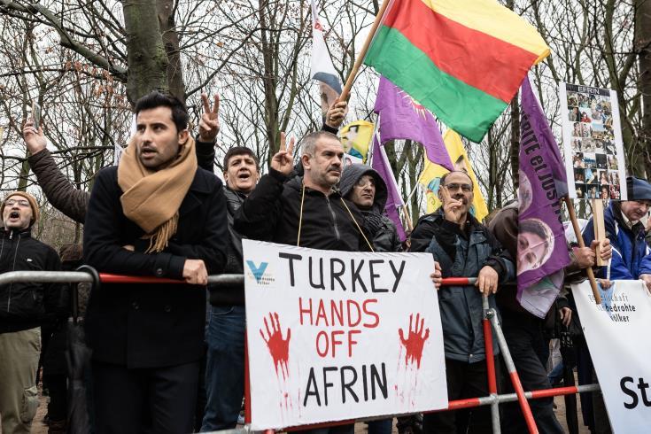 Από την 20η Ιανουαρίου, που ξεκίνησαν οι τουρκικές επιχειρήσεις στην Αφρίν, 165 άμαχοι, μεταξύ αυτών 29 παιδιά, έχουν σκοτωθεί, όπως λέει το Συριακό Παρατηρητήριο Ανθρωπίνων Δικαιωμάτων, ενώ η Τουρκία διαψεύδει ότι στοχοθετεί άμαχους. Επιπλέον, 266 μαχητές, των δυνάμεων που έχουν συμμαχήσει με την Άγκυρα, και 302 μέλη των κουρδικών δυνάμεων σκοτώθηκαν κατά τη διάρκεια της ίδιας περιόδου, σύμφωνα με τη μη κυβερνητική οργάνωση.