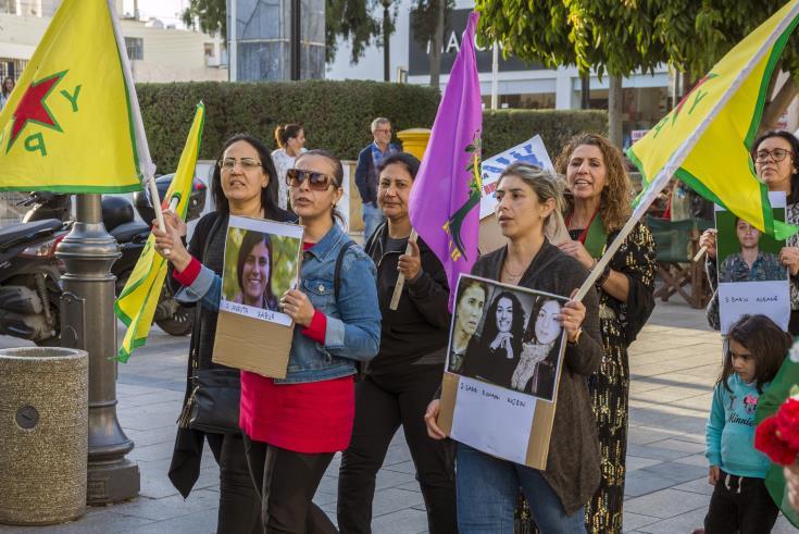 Κρατώντας φωτογραφίες Κούρδισων γυναικών που πολέμησαν και πέθαναν για την ελευθερία, οι Κούρδισες της Κύπρου, ξεκίνησαν την πορεία τους από το Πολιτιστικό Κέντρο "Θεόφιλος Γεωργιάδης", στη Λεμεσό και κατευθύνθηκαν προς την πλατεία Γρηγόρη Αυξεντίου (Διοικητήριο).