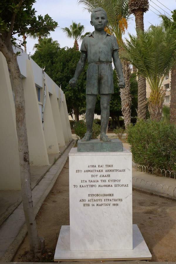 Κι όμως, οι κατακτητές δε ντράπηκαν, δεν σεβάστηκαν την παιδική αθωότητα, δεν έδειξαν στοιχειώδη πολιτισμό. Ένας στρατιώτης σημάδεψε το παιδάκι και μια σφαίρα το πέτυχε στο πρόσωπο, πάνω από το μάτι. Στο δρόμο, που σήμερα έχει το όνομα «Οδός Δημητράκη Δημητριάδη», έπεφτε νεκρό το κορμάκι του Δημητράκη Δημητριάδη από τη Λάρνακα. Του εφτάχρονου μαθητή και ανθοπώλη, που με ένα πανέρι συνήθιζε να πουλά λουλούδια στους δρόμους.