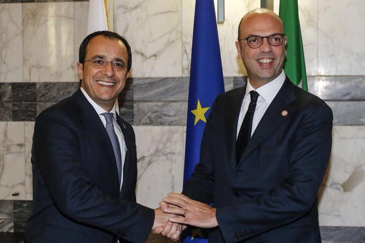 Οι σχέσεις Κύπρου – Ιταλίας και οι ενεργειακές εξελίξεις στην Ανατολική Μεσόγειο βρέθηκαν, μεταξύ άλλων, στο επίκεντρο συνάντησης που είχε ο Υπουργός Εξωτερικών Νίκος Χριστοδουλίδης με τον Ιταλό ομόλογό του Αντζελίνο Αλφάνο, στο περιθώριο της Υπουργικής συνάντησης της ομάδας διεθνούς στήριξης του Λιβάνου, στη Ρώμη.