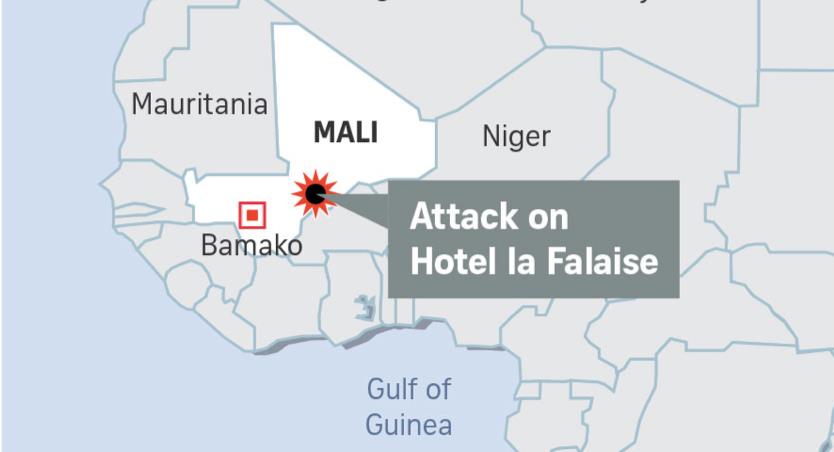 Στο ξενοδοχείο σύχναζαν άλλοτε πολλοί ξένοι τουρίστες, αλλά η βιομηχανία του τουρισμού της χώρας υπέστη βαρύ πλήγμα όταν οργανώσεις ισλαμιστών, ορισμένες από τις οποίες ορκίζονται πίστη στην Αλ Κάιντα, κατέλαβαν μεγάλο μέρος της ερήμου στο βόρειο τμήμα του Μαλί το 2012. Απωθήθηκαν όταν εξαπολύθηκε στρατιωτική επιχείρηση υπό την ηγεσία της Γαλλίας έναν χρόνο αργότερα, αλλά οι επιθέσεις εξακολουθούν να είναι συχνές.