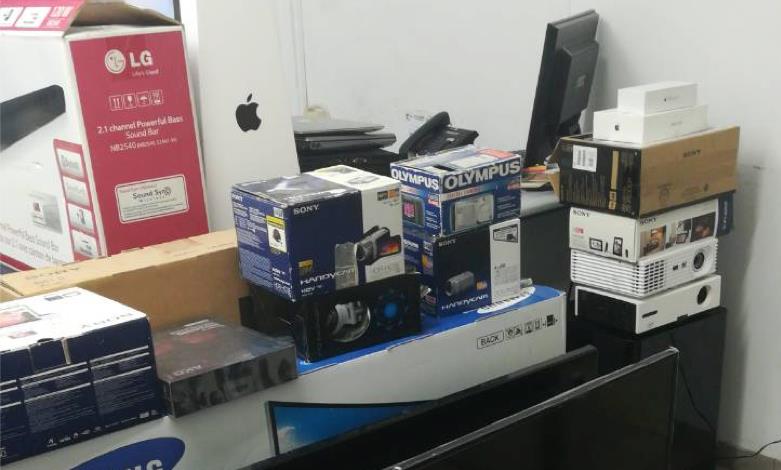 Σε έρευνα που ακολούθησε τη σύλληψη του 38χρονου στην οικία του στη Λεμεσό, εντοπίστηκαν οκτώ τηλεοράσεις, έντεκα ηλεκτρονικοί υπολογιστές, δέκα ηχεία, επτά βιντεοκάμερες, ένα ψυγείο νερού, ένα μίξερ, καθώς και άλλα αντικείμενα τα οποία πιστεύεται ότι είναι κλοπιμαία.