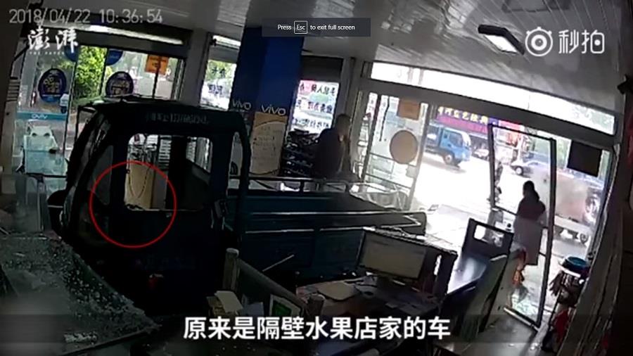 Κι όμως, αυτό συνέβη στην Κίνα. Ενα ηλεκτρικό τρίκυκλο εισέβαλε σε μικρό κατάστημα, ευτυχώς χωρίς να προκαλέσει τραυματισμούς. Και μέσα στο όχημα βρισκόταν μόνο ένας σκύλος!