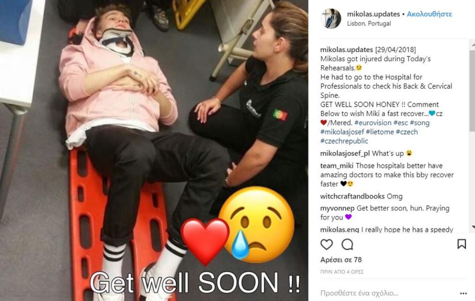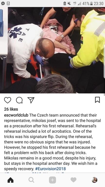 Ο Mikolas Josef είπε χαρακτηριστικά: «Επιβεβαιώνω ότι τραυματίστηκα κατά τη διάρκεια της πρόβας και η κατάστασή μου χειροτέρεψε τις επόμενες ώρες. Δεν μπορώ να περπατήσω καν τώρα. Γύρισα από το πρώτο νοσοκομείο και πάω σε άλλο. Ευχαριστώ για όλα τα μηνύματα και τις προσευχές σας. Όλοι κάνουμε ότι μπορούμε για να σταθώ στα πόδια μου σύντομα. Θα το κάνω ότι κι αν γίνει».