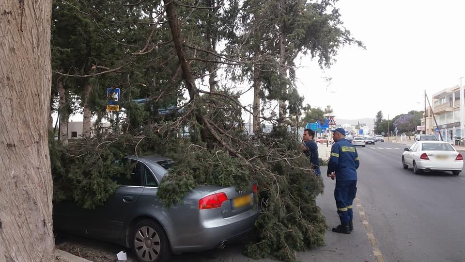 Οι δυνατοί άνεμοι που έπνεαν το μεσημέρι στην Πάφο προκάλεσαν πτώση δέντρων στην περιοχή Δασούδι.