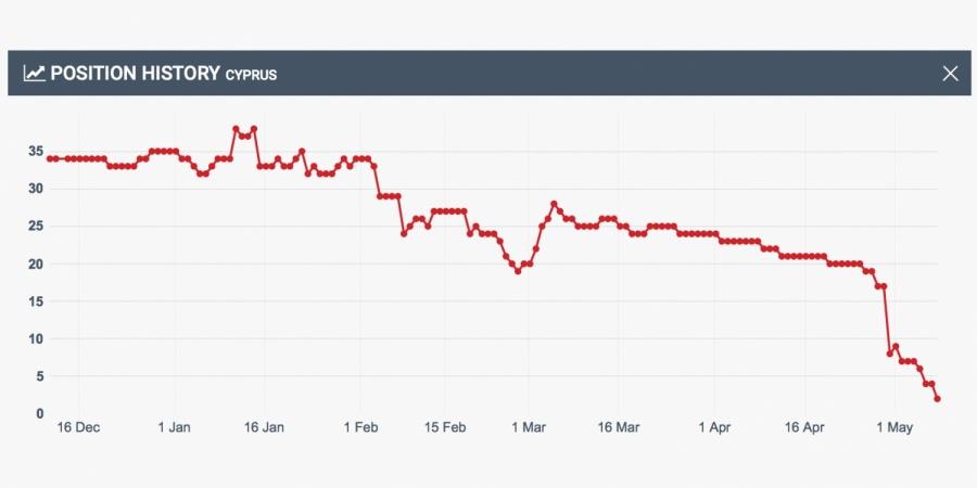 Η Ελλάδα παραμένει στην 16η θέση.
