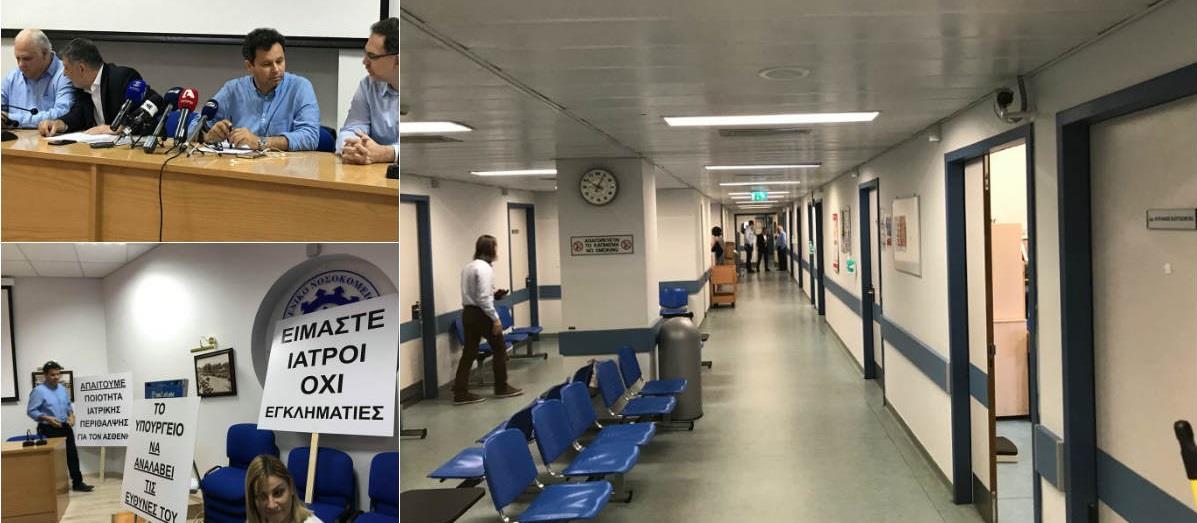 Σε διώρη στάση εργασίας, παραλύοντας τα κρατικά νοσηλευτήρια και προκαλώντας ταλαιπωρία στους ασθενείς, κατέρχονται από τις δέκα το πρωί μέχρι τις δώδεκα το μεσημέρι οι κυβερνητικοί γιατροί, προφασιζόμενοι τα προβλήματα που αντιμετωπίζει ο κλάδος τους και με αφορμή τη σύλληψη των δύο συναδέλφων τους του Γενικού Νοσοκομείου Λάρνακας, εναντίον των οποίων εξετάζεται πιθανή ιατρική αμέλεια που ενδεχομένως επέφερε το θάνατο του δεκάχρονου Σταύρου Γιωργαλλή.